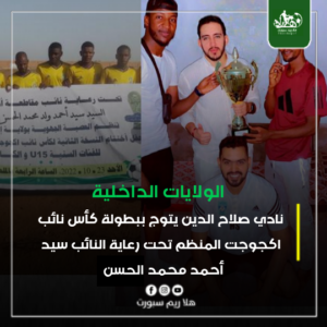 توج نادي صلاح الدين من اكجوجت ببطولة كأس نائب مقاطعة اكجوجت الذي تنظمه العصبة الجهوية لكرة القدم لولاية انشيري تحت رعاية النائب سيد أحمد محمد الحسن.